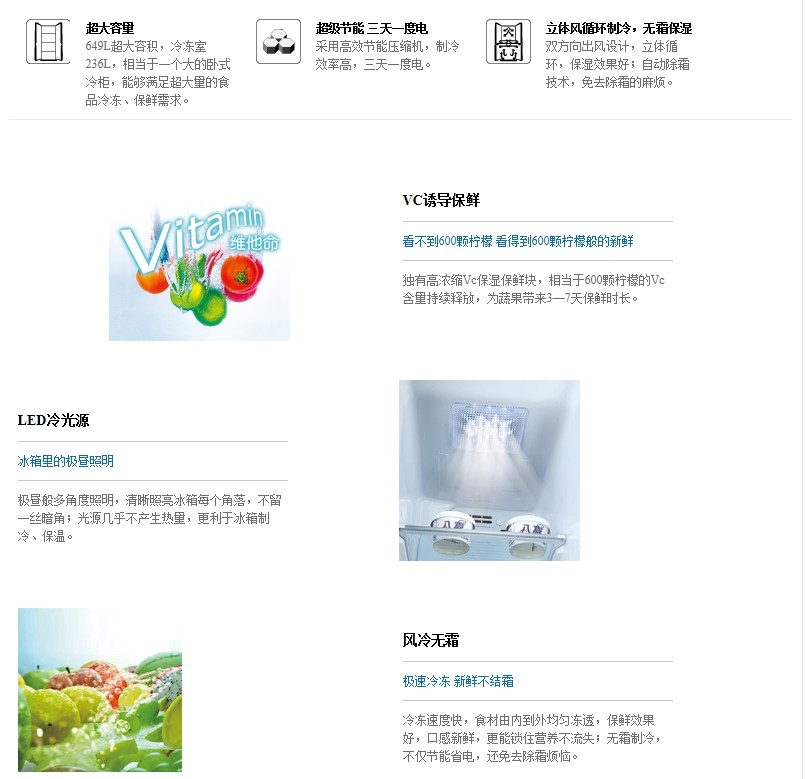 1、无极变频技术。节能、降噪、保鲜好。采用巴西原装进口恩布拉科变频压缩机,根据冰箱内部食物多少及设定温度选择**的压缩机转速运行,节能、降噪、保鲜;2、电脑双温双控、控温更**。设有冷藏室、冷冻室两个温区,且温度可以独立调节、控制,冷藏不用可单独关闭达到省电的效果;3、人工智慧功能。开启人工智慧功能,不需要人为调节,冰箱根据箱内温度及环境温度条件自动调整到**制冷效果;4、低温触媒除臭功能。在冷藏回风口设置有低温除臭触媒,有效去除冰箱使用过程中产生的异味;5、LED灯设计,能耗低、寿命长。LED灯亮度高,没有任何照明死角,而且能耗低,档次高、寿命长 ![]() ![]() |