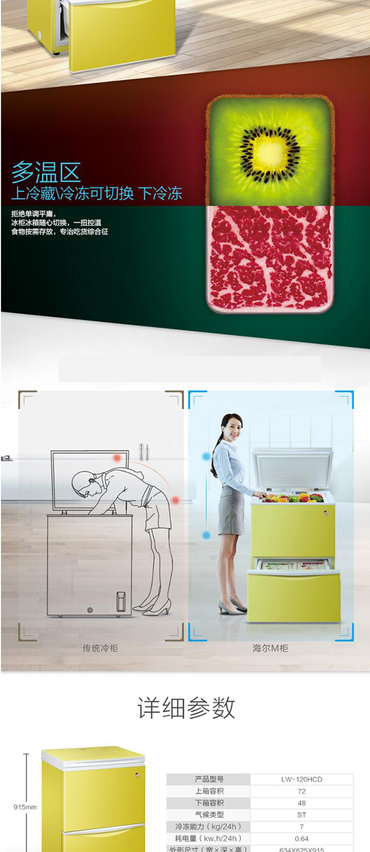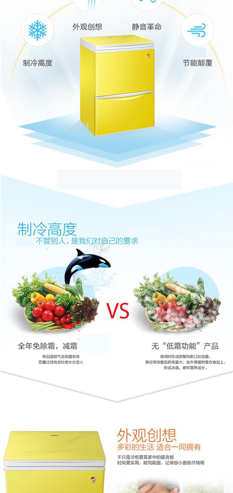 | 产品卖点 | 家用小冷柜,上箱冷冻/冷藏转换,下箱冷冻;分区存储不串味,存取方便;减霜70%;36dB行业**低噪音 |