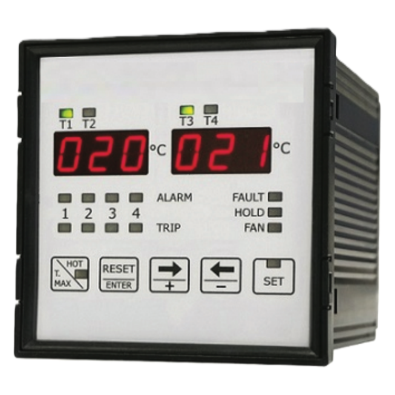 医院、数据中心和购物中心等地都通过安装干式变压器来尽可能地降低火灾和停电风险。为了确保这些变压器可靠安全地运行,我们需要使用不同的组件和保护装置。我们的温度监测装置(干燥温度指示器)能够实现报警和冷却系统控制,并通过PT100温度传感器持续监测变压器温度的异常变化,它同时最多可检测4处温度。