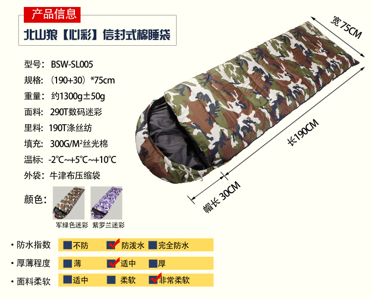 - 颜色:军绿色迷彩,紫罗兰迷彩